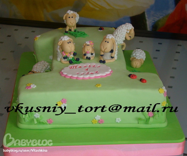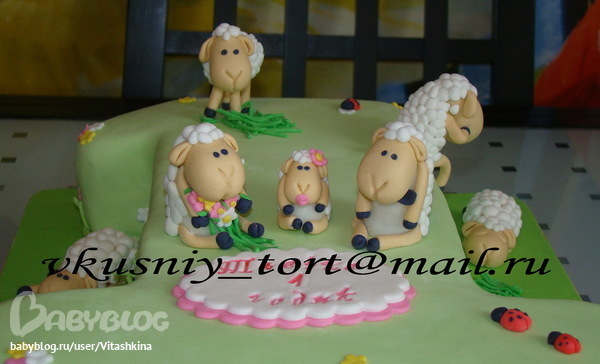 Торт единичка с овечками :)