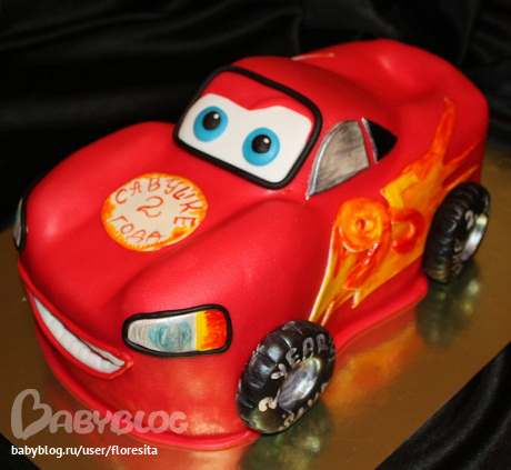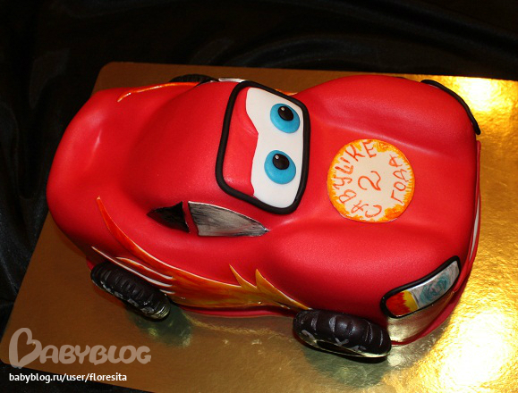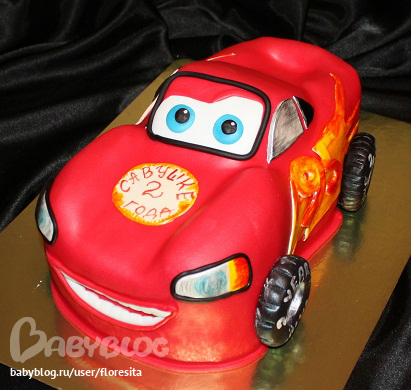 Олечка, торт аккуратный, яркий. Я бы на твоем месте взяла в нете удобное фото макквина и делала по нему. У твоего - вот кроме колес - ты о них сама все поняла - слишком массивная мордаха, крылья немного сзади повыше должны быть и переходить в споллер, в целом маккуин должен быть прямоугольником с закругленными углами и хорошей талией, попа ну совсем немного уже переда, зад (если смотреть сбоку) должен быть скошен книзу, и старайся низ подрезать немного, чтобы низ был покатый, то есть машина не должна лежать на подложке как пришлепнутая, а именно должна быть 3д-форма, прям под торт мастику убирай. А для первого это супер, я не знала, что ты их еще не делала)))