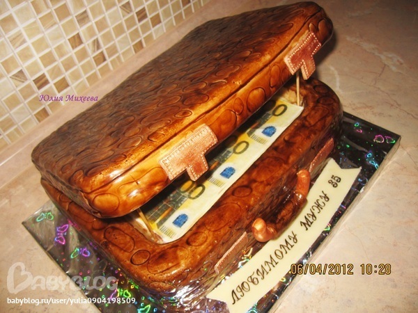 Торты для мужчинМой первый чемодан. Низ - торт Зебра с вишней и кремом с вареной сгущенкой и маслом, верх Панчо. вес 5,8 кг