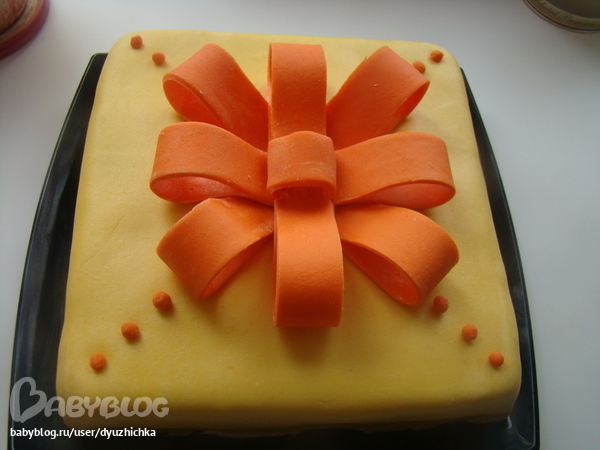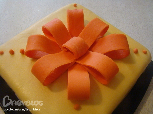 Мастики на большой бант не хватило и на перевязку тоже))). Поэтому просто бант по центру!