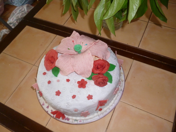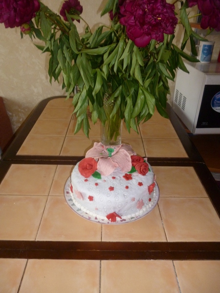 Проба пераДо этого мастику делала, пыталась что-то изобразить, но ничего практически не получалост. В этот раз решила все сделать по всем правилам - выровнять, обтянуть и сделать объемные цветочки. Розовую мастику делала сама, остальная - покупная. Выравнивала ганашем, потом масляным кремом, но все равно по-человечески выровнять не получилось. Остальное на ваш суд. Я очень старалась, буду рада любым комментариям, в том числе критике.
