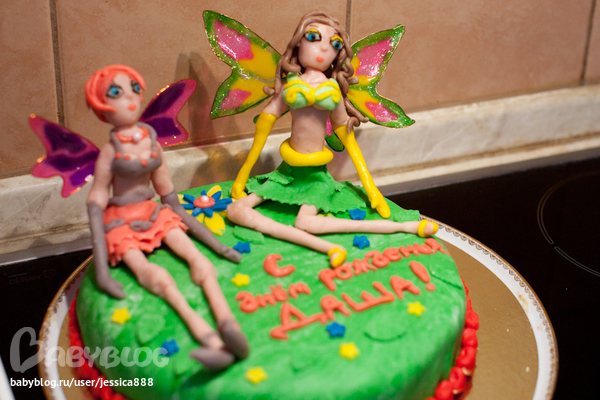 Трудный торт... Сделала, как смогла. Дочка (главный консультант) феечек одобрила, сказала, что "не похоже, но красивые".