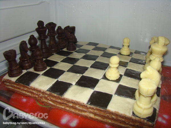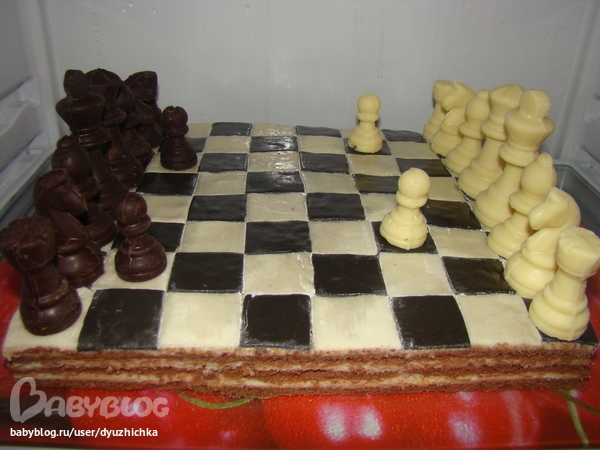 Бока украсить уже было нечем))), Ушло ОООчень много шоколада на фигурки, даже не стала все пешки доделывать... И совсем не хотел убираться крахмал..., забился между клеточками!