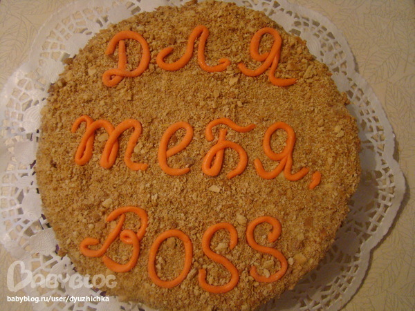 Это был тортик для коллег по работе. Надпись муж ("сама скромность") сам попросил такую))))
