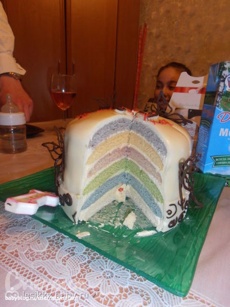 Cook it! - вкусные рецепты Торт РадугаИнгредиенты: Сок свеклы – 1-2 столовых ложки Сок морковки – 1 столовая ложка Желток – 1 шт Сок шпината – 1 столовая ложка Сок черники – 1 столовая ложка Сок ежевики – 1 столовая ложка Для торта: Мука – 3,5 стакана Разрыхлитель – 2 чайных ложки Сода – ½ чайной ложки Сахар – 1,75 стакана Сливочное масло – 75 г Растительное масло – 1,5 столовой ложки Белки – 2 шт Молоко – 1,5 стакана Обычный обезжиренный йогурт – ½ стакана Ваниль – 2,5 чайной ложки Сливочный крем: Сахарная пудра – 3,75 стакана Сливочное масло – 110 г Ваниль – 1 чайная ложка Молоко – 3 столовых ложки Глазурь из взбитых сливок: Жирные сливки - 2 стакана Сахарная пудра – ¼ стакана Соль – 1/8 чайной ложки Ваниль - 1 чайная ложка