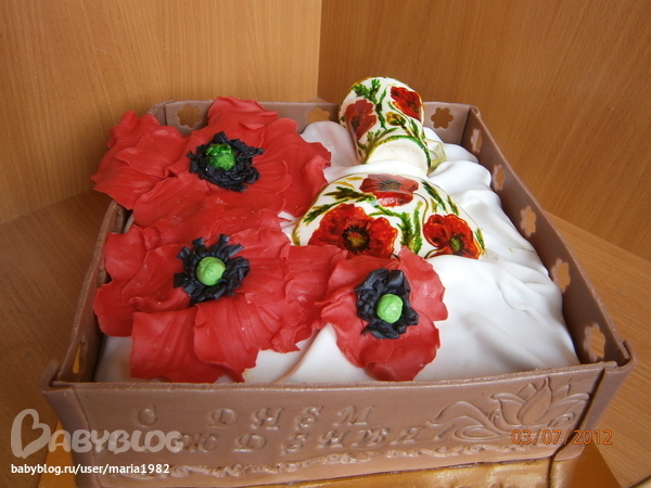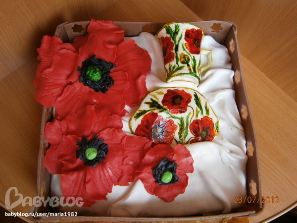 спасибо огромное!!!! хоть все быстро получилось, но я, как обычно, не довольна - фотик скрывает мелкие пятнышки, которые и так никому не видны, но которые меня бесят страшно... ;(( и маки опали... зато вкусный точно: я его дважды обрезала (в коробку не влазил) и лопала ;)))