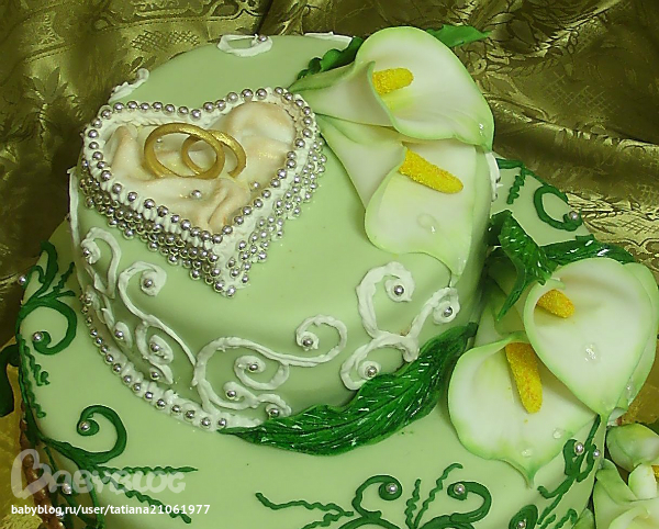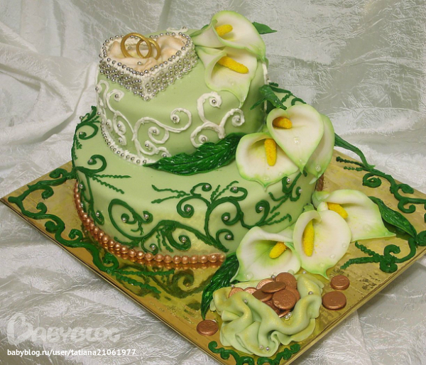 Торты свадебныеДелала на семилетний юбилей свадьбы. Девушка попросила чтобы были каллы и монетки медные, остальное на моё усмотрение, вот так и родилась ночью " Свадебная фантазия"