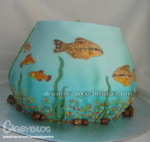 Потому что правдоподобно)) Можно один торт по разному слепить.Мне очень нравится форма аквариума, как водоросли торчат с него, водичка кольцами расстекается, водоросли красками, как задний фон, рыбки, да ВСЕ вообщем))) Придраться не к чему!))