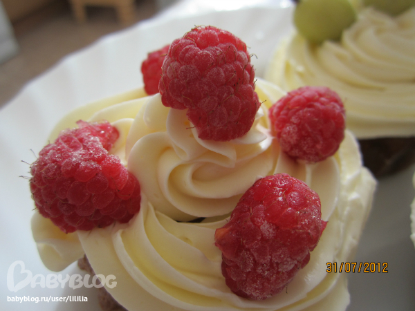 РАЗНОЕВ первый раз сестра испекла капкейки, украшенные мастикой. Вот что у нас получилось!!! Ягод свежих не было, пришлось класть замороженные)) Это мы просто для себя делали))
