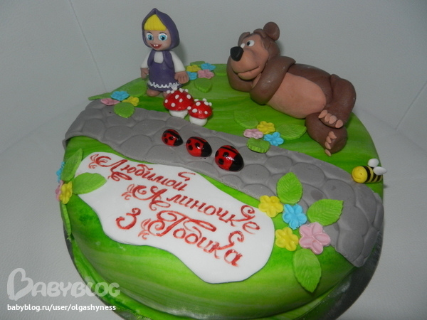 Торты детскиеДелала их первый раз, очень волновалась. Маша- не из молда. Но в общем и целом осталась довольна. Вес 2.8 кг, ванильный шифоновый бисквит+крем с маскарпоне+ абрикос и персик. Машу на тортик поставила ближе , чем Мишу, поэтому она кажется больше, чем есть.