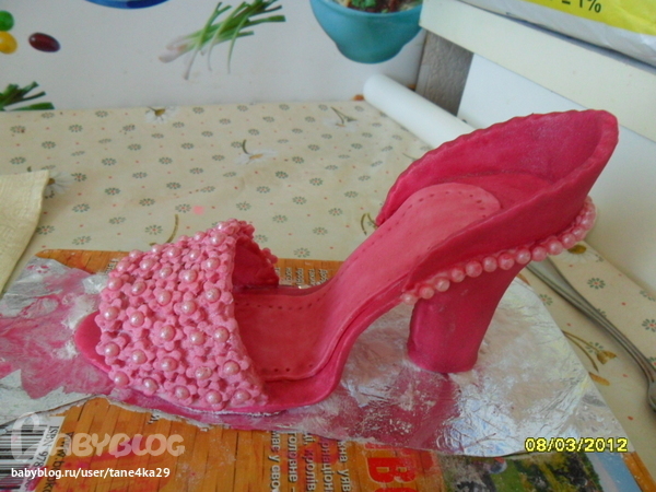 Кандурин это перламутр разных оттенков. Ну я туфлю делала для большой девочки, а ты в МК посмотри выкройки детских девчачих пинеточек, они мне так нравятся. У меня заказ на крестины для девчушки, но они капусту с младенцем хотят. а я так мечтала сандалики сделать у меня вырубки есть купленые. А так 2 пары кед на мальчуганов годовасиков. Вот 34ю пару димке так в облом лепить я себе с божьей коровкой хочу 2х. ярусный. Мой туфля
