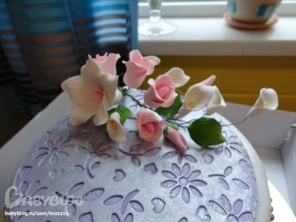 Здравствуйте! наткнулась тут на ваш тортик,очень красивый! скажите вы из какой мастики ваяли ваш букет? тоже из овалетте?