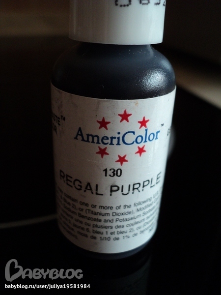 Спасибо большое)) Коржи- шоколадный бисквит классический+ пропитка сиропом. Начинка- сливочно творожное суфле с абрикосами (которые в сиропе). Краситель- вилтон королевский фиолетовый( по моему так)+ кандурин "серебрянная искра"