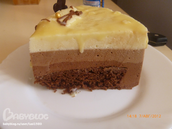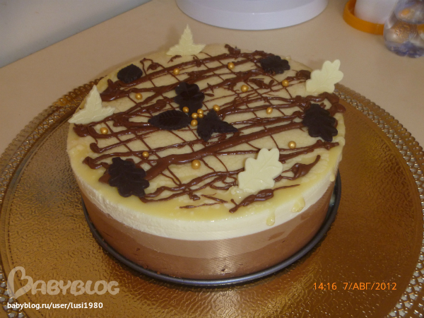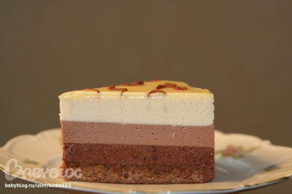 я по еее рецептику делала,только первый раз делала в нижнем слое с горьким шоколадом,но это очень на любителя он своей горечью весь вкус перебивает,а второй раз делала просто с темным,вот это совсем другое дело,очень вкусный и нежный.