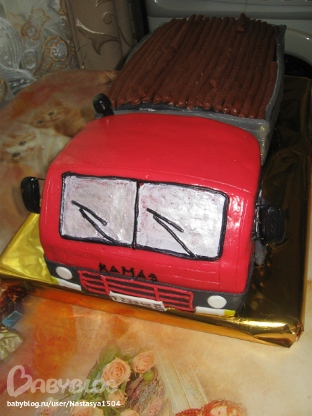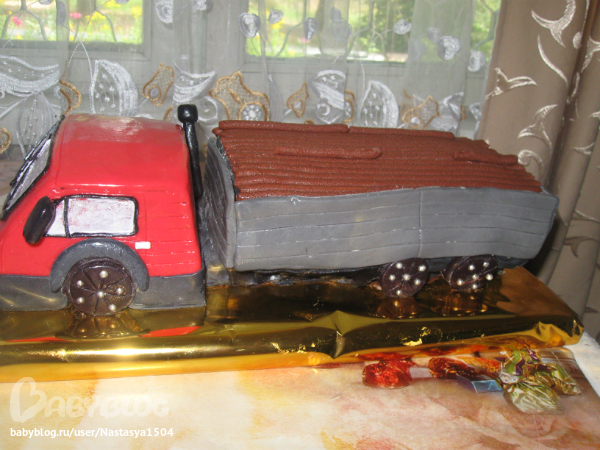 А по мне, так и ничего!!! Такой грузовик отгрохала!!! Молодец!!! Да еще и с бревнами!!!)) Это от тяжести бревен кузов согнулся)))) Но я полностью согласна с тобой, в такую жару вообще работать не возможно!!!!!!!!! Мы тоже последний тортик с туфелькой делали, все тает, невозможно!!!