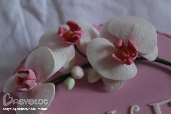 очень красивый тортик,а орхидеи как настояшие. а ты как текстуру им придала?