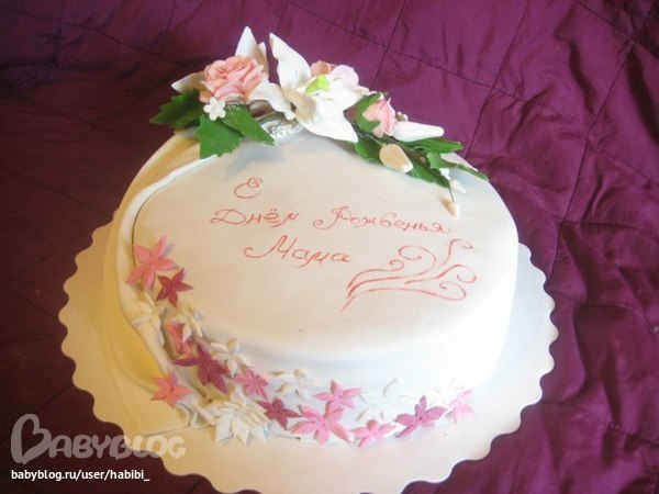 Старалась как можно красивее написать, вот только перестаралась... Буква "С" больше на "З" похожа, а "д" толи на "б" толи на "в"... Тешу себя мыслью, что это всего лишь 5-ый тортик, и стоит подъучится и натренироваться и все получится