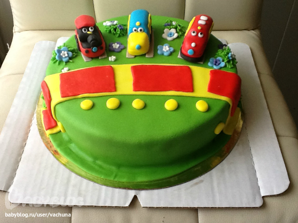 На розовый, мы на ДР ходили, очень вкусный даже домой кусочек урвали с домиком. А фигурки с торта начали разлетаться в миг один мой успел съесть два шарика, пирамиду и зайца( самый шустрый оказался). Мастика очень нежная вышла, прям ммм. ( помню наш торт прошлогодний там не такая вкусная была)...