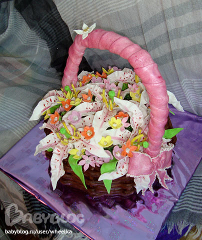 Миленький торт!У меня в голове уже несколько недель крутилась корзика именно с лилиями, а тут ваш торт!Будет как наглядное пособие.Юля,скажите цветы на проволке или так приклеены?