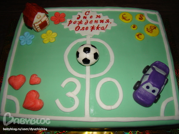 Заказ был именно такой - футбольное поле, денежки, машинка (с глазками), влюбленная пара (комическая).