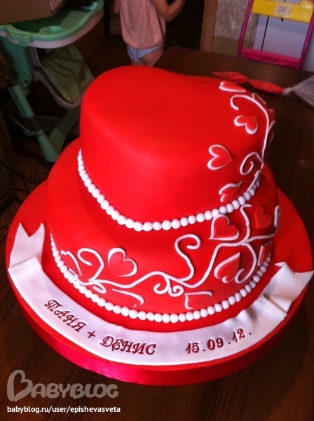 оо, вот и тортик с авы)) очень красивый получился! свадбеный))как красила в итоге? и какой мастикой покрыла7