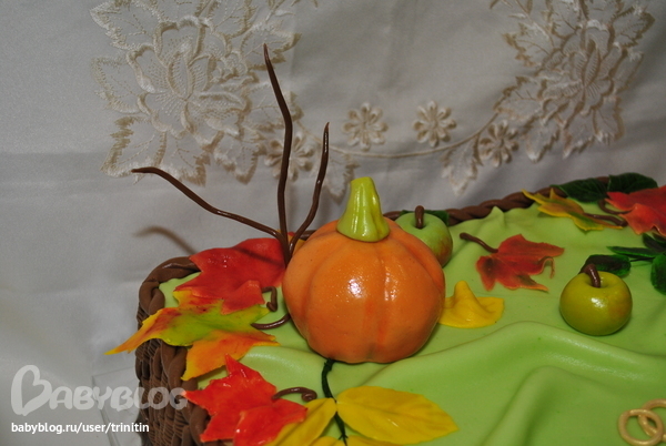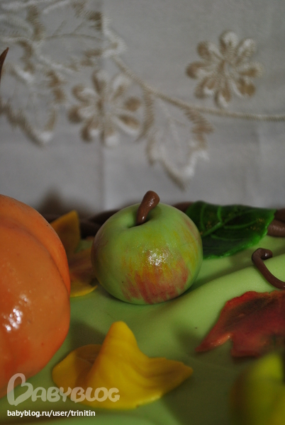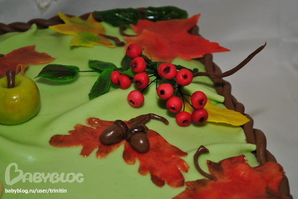 В этом торте тоже много для меня новинок - яблочки, рябинка, желуди