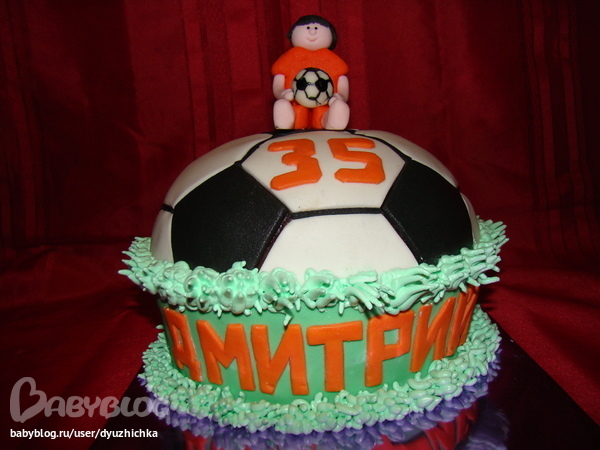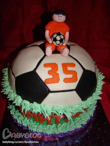Торт уехал в Москву. С ним на одном столе был еще один "футбольный тортик" от кондитерской А. Селезнева. Он был вкуснее моего, как выяснилось позже там были три шоколада, но по украшению - цитата: "мы их сделали"))))