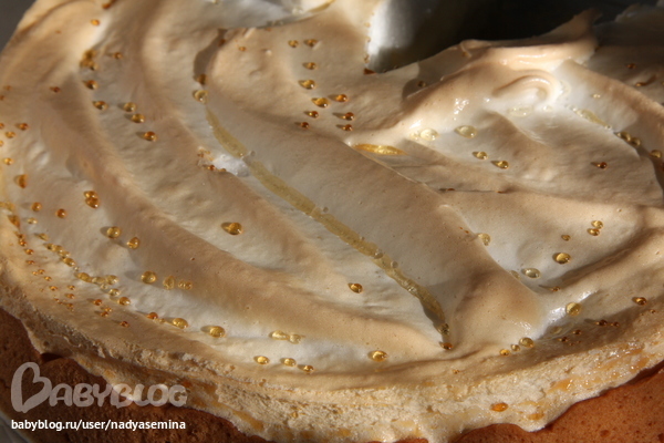 Надежда, спасибо за рецептик. уже опробовала... вкусняшка нереальная... только у меня безе не такое по высоте получилось.. почему-то упало((( и после духовки оно очень мягкое было... это нормально? еще наверно я его в духовке передержала.. слезинки так и не появились... попробую еще разочек попозже.... еще раз спасибо за рецептик!!!!
