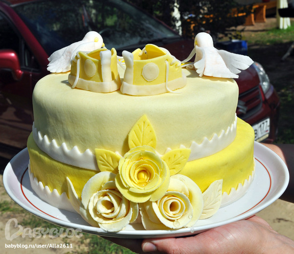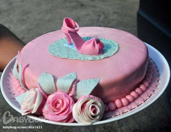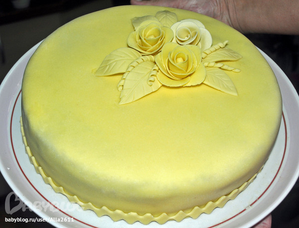 Первый просто был тренировочный.Я его делала ради того, чтобы попробовать покрывать мастикой.Ну и чтобы не был голым решила розочки сделать.