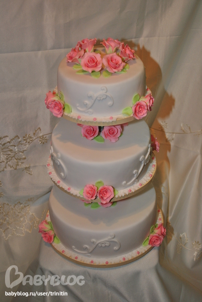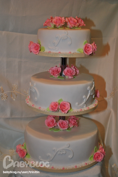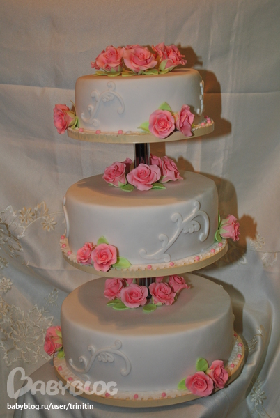 Торты свадебныеДевочки, сегодня я опять со свадебным тортиком. Заказала моя знакомая в качестве подарка на свадьбу брата. Выбрали они значит картинку и прислали мне. Сделать такой торт только на подставке. Оставить все как есть, только торт то кремовый, а я с мастикой работаю - ну сказали делай с мастикой.Даже начинки на мое усмотрение.