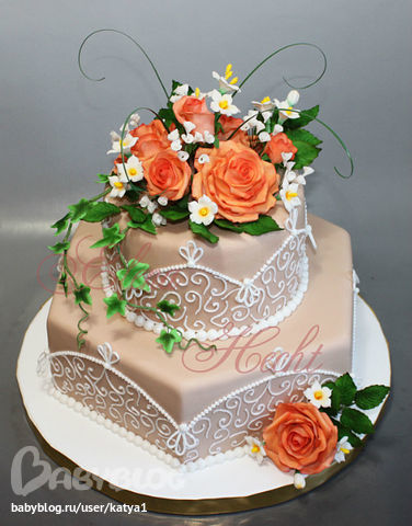 с оформлением торта---- то есть нужно конкретное фото---- слова заказчицы постоянной---- НУЖЕН ШИКАРНЫЙ ТОРТ КГ НА 5 , может с кружевом , незнаю.............