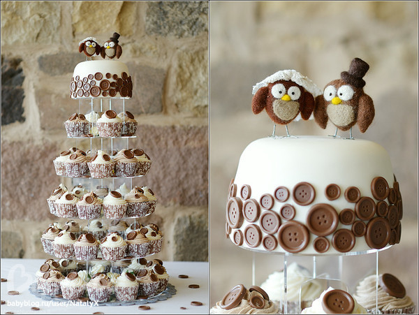 Покажу тортик с капкейками, который меня впечатлил больше всего за последнее время - простенько и со вкусом. Правда он свадебный, но можно и переиграть.