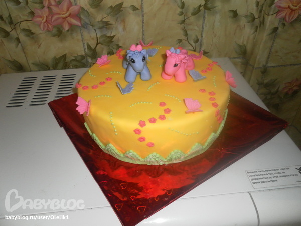 Торты детскиеЗаказчица позвонила и попросила им к чаю тортик, такой же какой я им уже делала. А оформление, просто что-нибудь для дочи попросила. Внутри воздушный бисквит, сметанный крем с белым шоколадом и сгущенкой. Вес 1800гр.