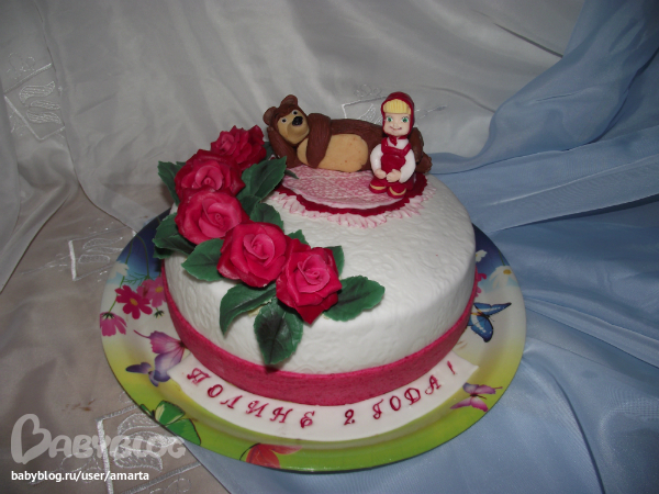 Спасибо.Второй торт для знакомой..за так почти.поэтому было право на эксперимент.Попробовала придумать что-то..чтобы потом на заказном торте довести идею до совершенства.Спасибо:)Машу я специально не довожу до похожести.В связи с участившимися случаями судебных исков..так просто девочка Маша и животное медведь:)