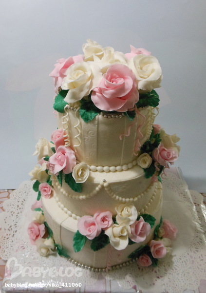 .Розы тоже , вот пока их 50 штук не сделала руку не набила. Мастику делаю сама из мармышек.Эта розовая без красителя,приклеила розочки растоплиной белой глазурью. Спасибо всем БОЛЬШОЕ!