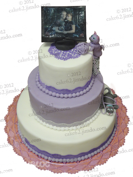 ого, классный тортик, Если б не телевизор сверху, можно было бы сразу свадьбу играть))) Шикарный))) Кстати, этот ТВ что-то значит? Просто он тут не совсем смотрится, если честно)) Если бы там был цветок, то точно на свадьбу бы его))) Шикарный торт, и кружева красивые!!! И киски))0 Молодец!!!