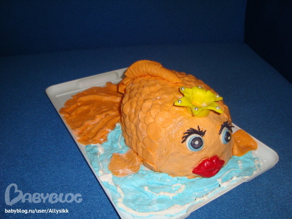 Торты 3ДА вот и Золотая рыбка...Вес 4кг Бисквит+масляный крем+курага. Жду критики и предложений!!!!!!!