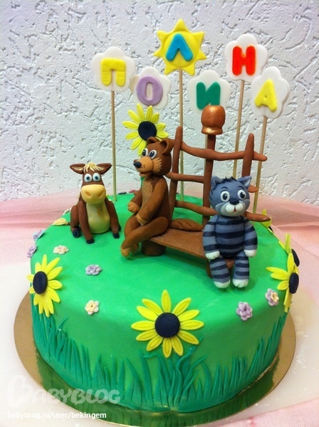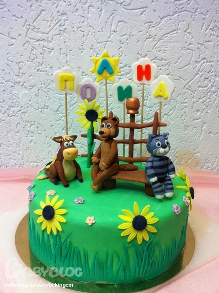 Собака не получилась, мастика...только матные слова про нее!!! Вся рвется, а мне на пятн свадебный 3х ярусный, а в воскр - машина 3D((((( Что делать?????? Похоже в ночь с четверга на пятницу я стану лысой!!!! Вырву себе все волосенки!!!!!! Тут цветами заляпала, а там торт лысый!!!!!!