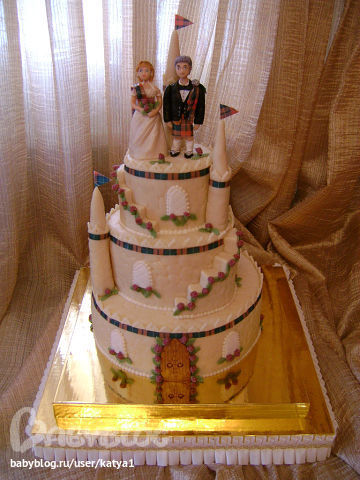 Вау!!!! Вот это торт!!!!! Катя, спасибо!!!!! Идея с замком тоже классная!!!!!...правда мне заказали торт не большой......это не свадебный...а просто торт в подарок для жениха и невесты.....свадьба проходит в шотландском стиле и гости должны быть одеты соответствующим образом)))......но если заказчице идея понравиться, то можно и одноярусный торт сделать ввиде замка