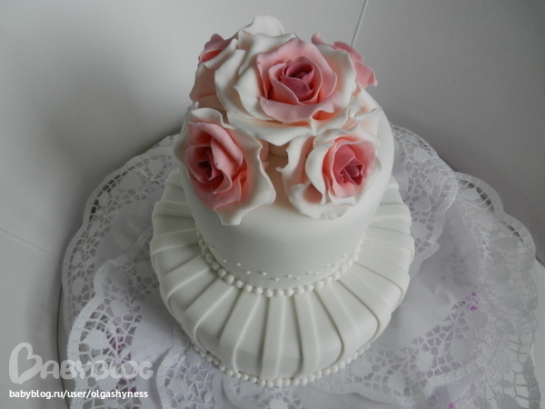 не как все нормальные люди ))) ну то есть не так как положено. я их еще мягкими сложила в такую композицию (верхнюю розочку поставила на кусочек пенопласта). Так как были мягкие-склеились между собой на воду. Высохло-аккуратно перенесла все это дело на торт.