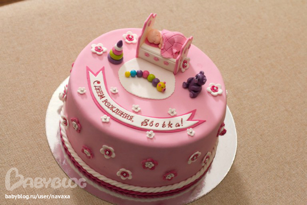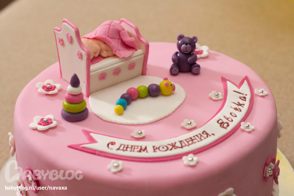 Какой хорошенький тортик! И пупсик под одеялком, а то лежит иногда этот пупсик голенький - так жалко его, что ему холодно!