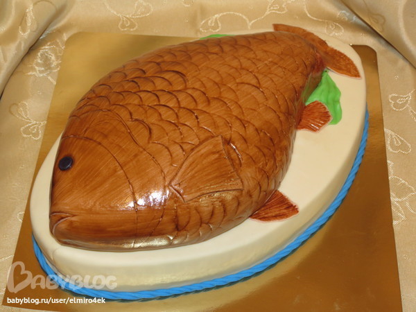 Делала три торта за три дня, катастрофически не успевала.. Хотелось рыбу разукрасить более натурально, но не успела. Надеюсь, заказчица меня простит, а ее папа останется доволен.