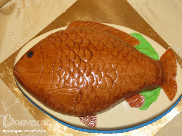 Высечено!! что вы, что вы :)))))))))))))))) я бы даже если очень захотела, наверное не смогла бы....торт в виде овальной тарелки (надеюсь, хоть похоже, что типо тарелка? :))))))))) а на ней рыба, будем считать, запеченая :))))) да, все это медовик.