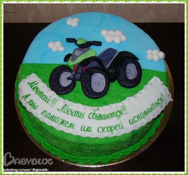 Торты для мужчинБыл такой же тортик с трактором, вот теперь квадроцикл.....надеюсь похож)))