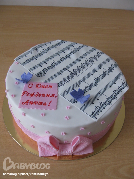 Торты детскиеТортик заказала бабушка для внучки,Анюта играет на фортепьяно и просили это обыграть.Я сделала тортик с нотами на сахарной бумаге.Спасибо всем кто помогал идеями.