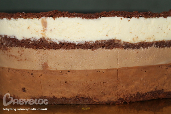 Такой трогательный!)) а под белым слоем бисквит, это так и надо? Я вроде смотрела, там суфле друг на друге прямо, без прослоек бисквита... маме планирую испечь через пару недель, поэтому интересуюсь