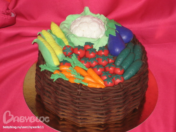 Внутри овощей разные вкусности, орешки, нуга. Торт без корзины и овощей весил 2.300.