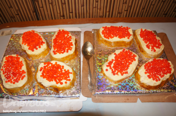 мне вот интересна реакция гостей... когда они со стола бутербродик берут и уже вкус икры предвкушают... а там - бац! и пироженка!))))