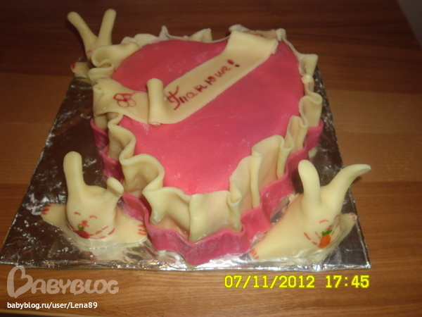Торты для женщини вот я с парой тортиков)))))) первый тортик сердце с зайками....