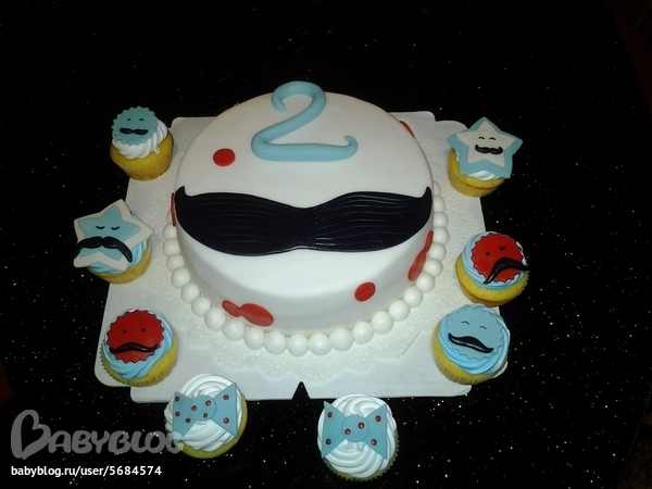 Интересные усики))) Все смотрю на них и не могу понять - зачем в два года усики? Или этот тортик не на день рождения?))))